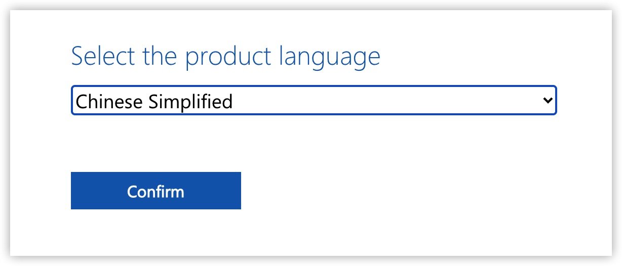 - 从语言里选择Chinese Simplified,然后点击Confirm: